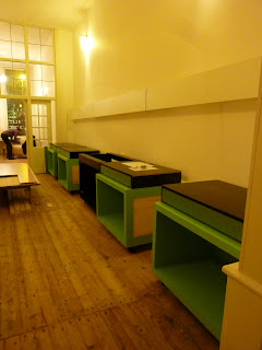 Mark Verhoeven placed the kitchen units. The floor is 10cm lower at one end of the room, so it will be hard to get the whole structure level.